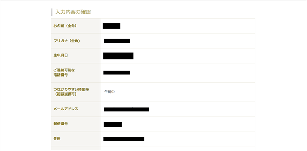 入力するのは、名前、生年月日、電話番号、メールアドレス、住所、性別、職業などです。