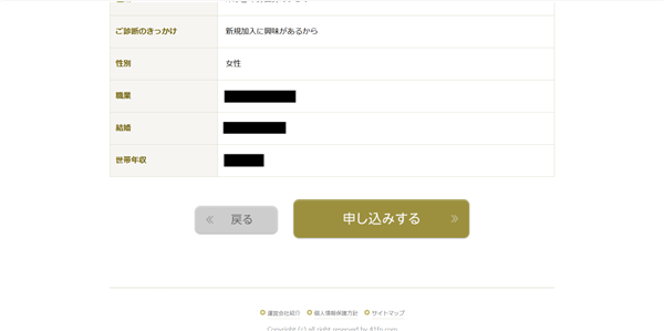 入力内容が間違っていなかったら、申し込みをするで完了です。