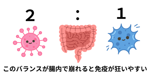 そして一番健康的な腸内バランスは、善玉菌と悪玉菌のバランスが2:1の割合の時です。